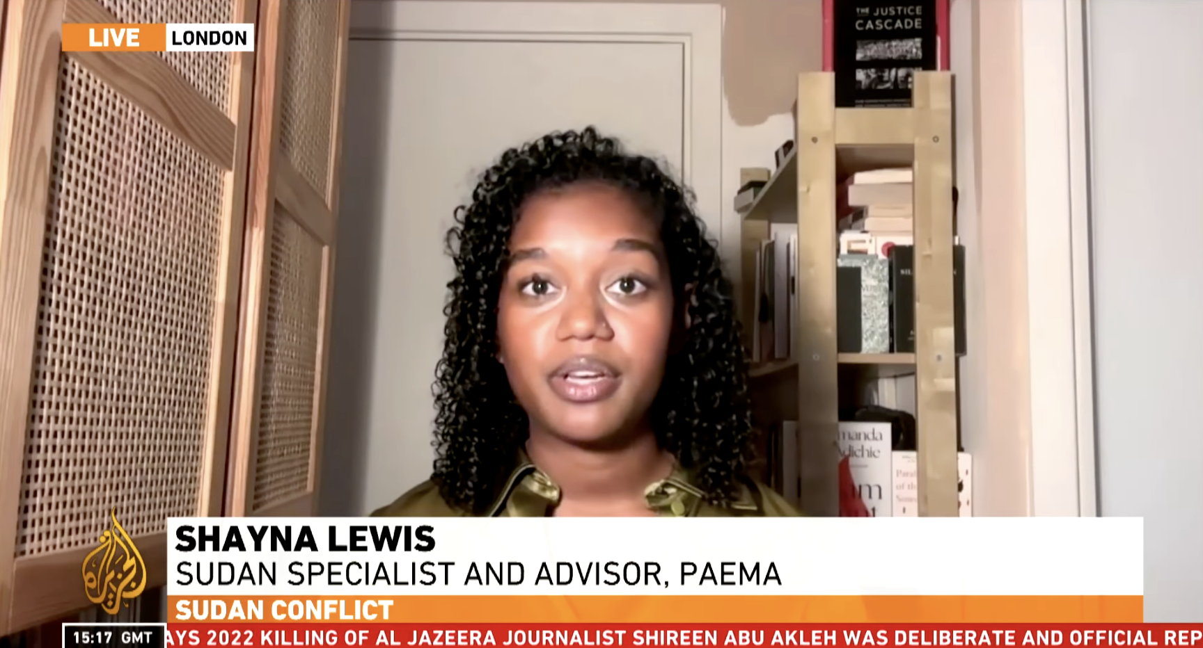 October 29, 2025, Shayna Lewis spoke on Al Jazeera about the massacres taking place in El Fasher.